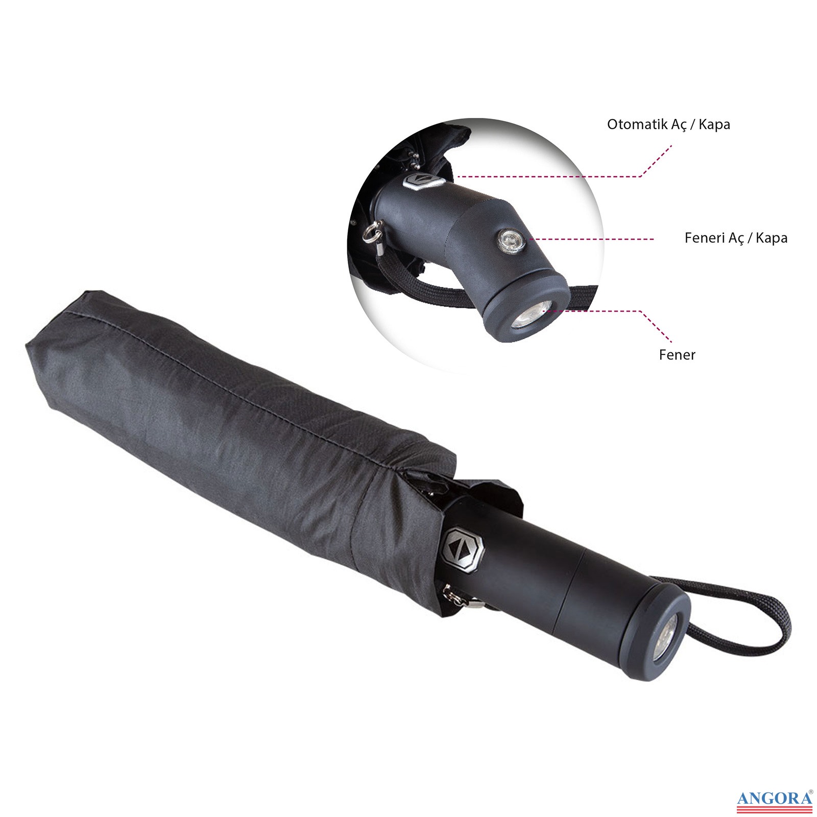 *Güçlendirilmiş 10 Telli İskelet Yapısı *Tam Otomatik Mekanizma (Aç/Kapa) *LED Işıklı Tasarım *Ergonomik Plastik Sap *Baskı: Transfer, Şeker, Serigrafi